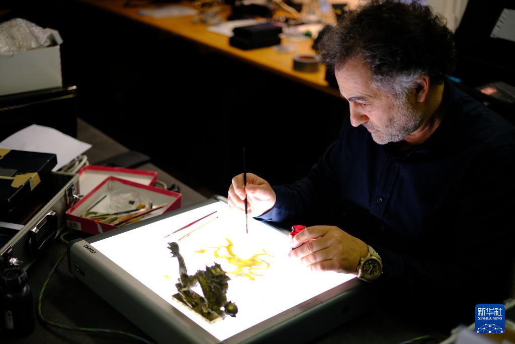 2月7日,瑞士灯光艺术家、电影制片人格里·霍夫施泰特尔在其位于苏黎世的工作室里创作。新华社记者 陈斌杰 摄