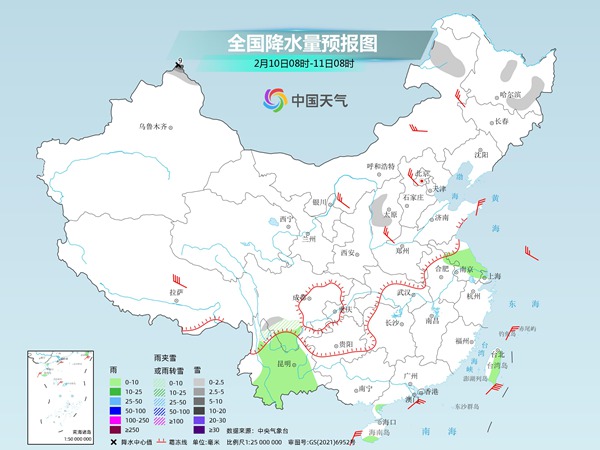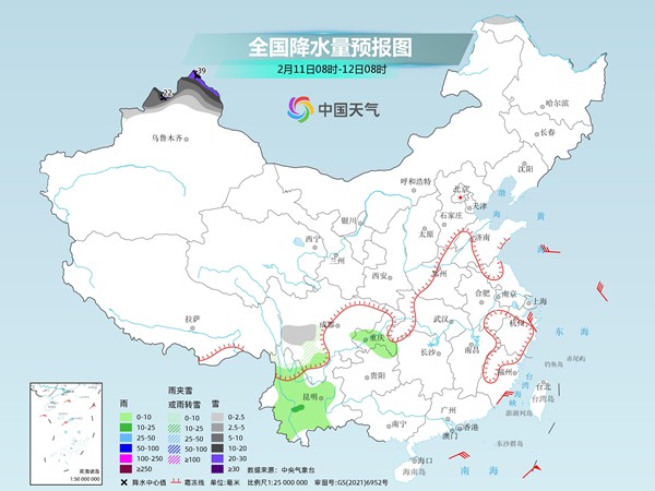 其中,今天,新疆北疆北部、内蒙古东北部、黑龙江中东部、山西西北部、川西高原南部等地的部分地区有小雪或雨夹雪,其中新疆阿勒泰的部分地区有中雪,局地大雪(5~9毫米);四川西南部、云南、江苏中南部等地有小雨。内蒙古中西部、山东半岛、陕西北部、山西、河北北部等地的部分地区有4~6级风,其中西藏中部的部分地区风力可达7级以上。台湾海峡、南海中部和南部有6~7级、阵风8级的东北风。