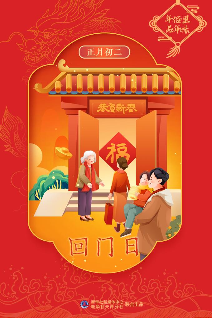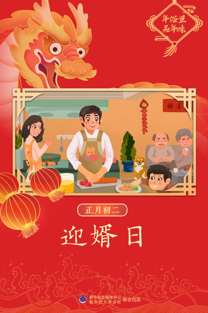 正月初二,是嫁出去的女儿携夫带子(女),提着大包小包回娘家的日子,又称“回门日”“迎婿日”“姑爷节”。