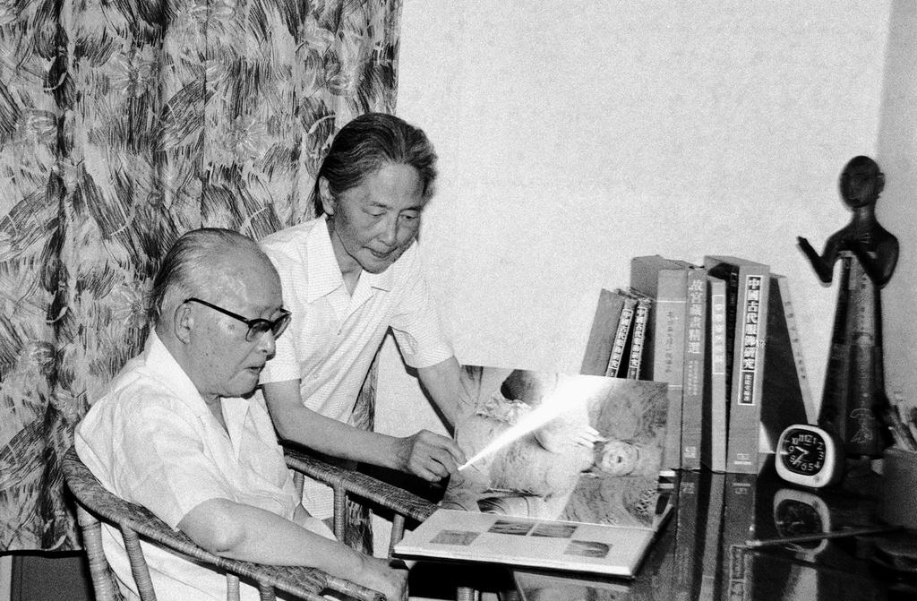 图为沈从文和夫人在家中翻阅画册(1986年6月7日摄)。