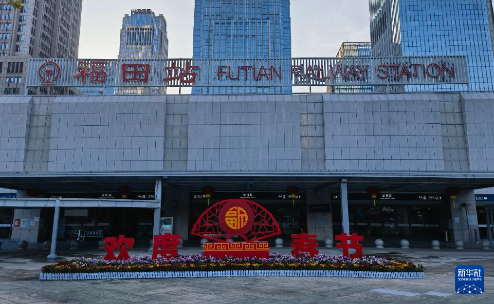 2月11日拍摄的深圳福田站进站口的“福”字景观点。 新华社发