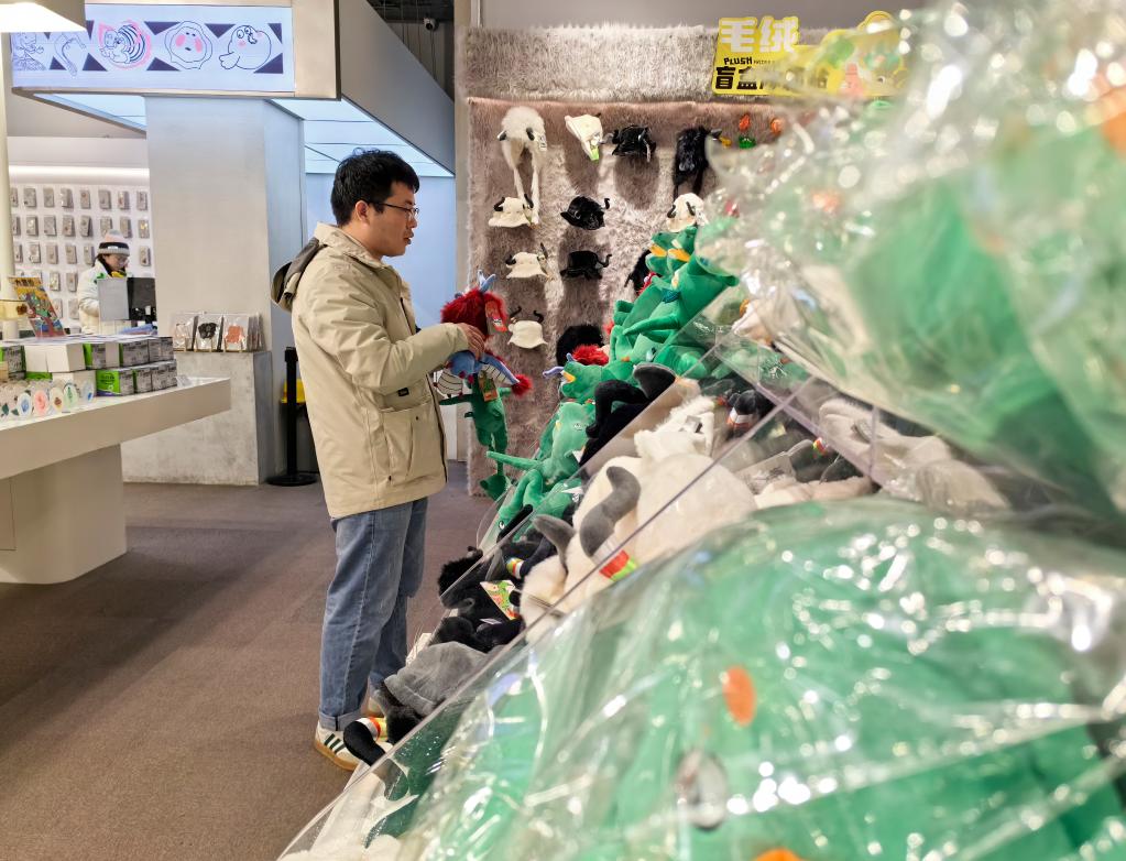 2月2日,游客在甘肃省博物馆文创商店挑选文创产品。新华社记者 何问 摄
