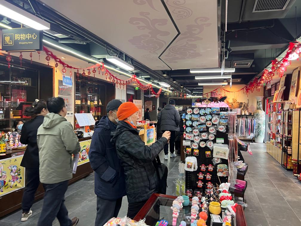 2月12日,游客在杨柳青民俗文化馆挑选文创产品。新华社记者宋瑞 摄