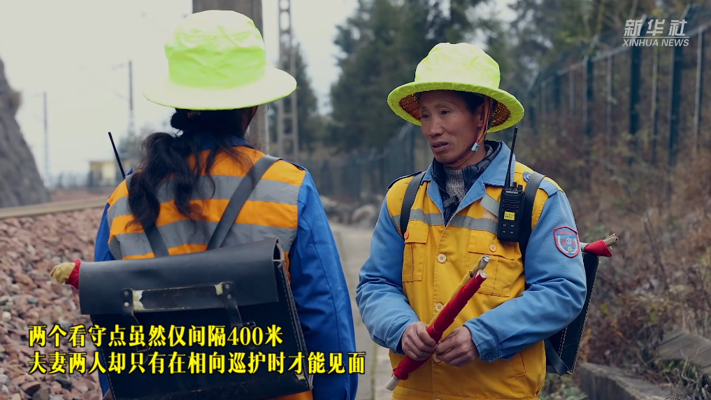 秦德胜、陈留仙夫妇是乌蒙山腹地水红铁路86公里1号、2号看守点的两名看守工,夫妻俩在这里已经工作了12年。铁道在这里转了一个弯,一个看守点的值守视线会被山体阻挡,为确保列车运行安全,国铁昆明局曲靖工务段在此设置了两个看守点。两个点位虽然仅间隔400米,夫妻两人在值守时却相互看不见。