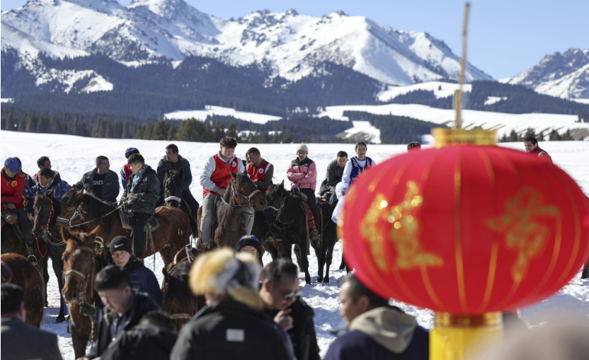 天山雪峰逶迤,阳光正盛。白雪茫茫的甘沟乡乌拉斯台草原上,人声鼎沸。