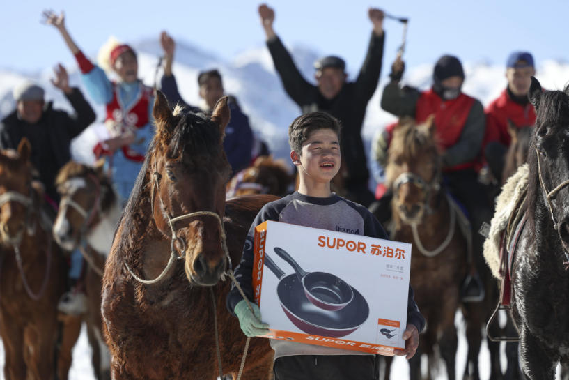 龙年新春伊始,16岁的帕哈丹·帕拉哈提就靠本事挣了一份别样“压岁礼”——崭新的厨房锅具。这是他在天山雪原策马奔驰,力克数十位赛马选手后获得的奖品。