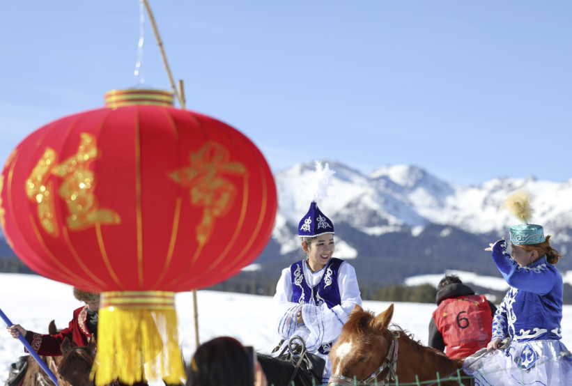 帕哈丹参加的是新疆乌鲁木齐县“春节八天乐”系列文体活动之趣味体育民俗闹新春。除雪地赛马,还有“姑娘追”、叼羊等项目。以牧民为主体的选手加上各地观众,现场共有400多人欢聚一堂,同享“马背上的年味”。