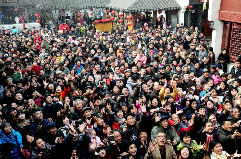 2011年2月7日是农历正月初五,在江苏苏州山塘古街,“财神日”民俗表演活动吸引游客驻足观看。