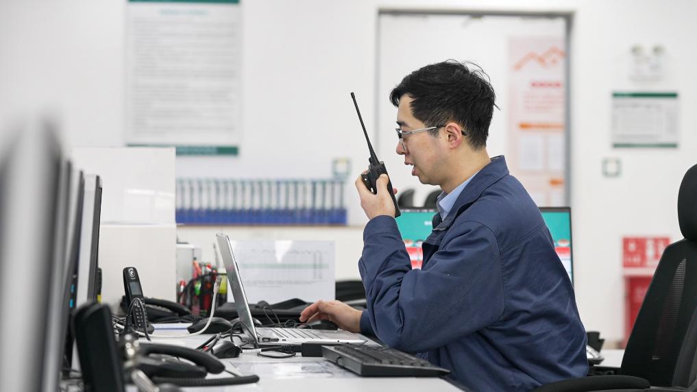 图为刘宝瑞正在向同事确认交流滤波器投入后现场设备的运行情况。新华社记者刘振坤 摄