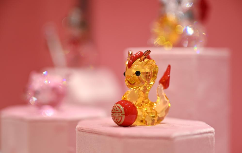 这是在海口日月广场免税店拍摄的龙年主题摆件(1月27日摄)。新华社记者 郭程 摄