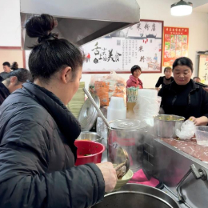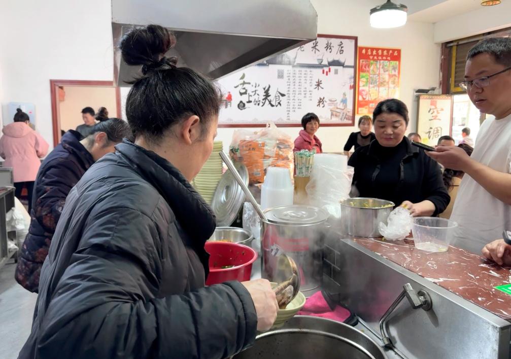 这家米粉店在镇上经营了36年,是当地的“网红小店”。店长刘祥娥告诉记者,春节期间店里生意非常火爆,一天卖出米粉超过2000碗。这些天,门店营业时间延长至14个小时,还临时增加了5名人手。