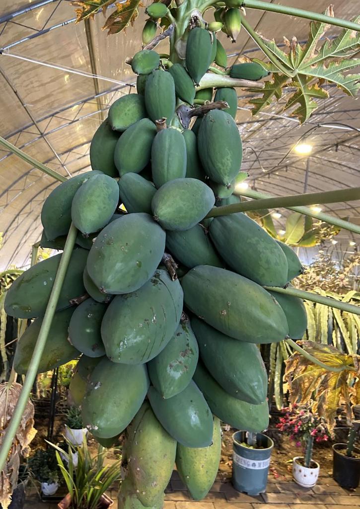 陕西杨凌青皮她园火龙果种植专业合作社试种的木瓜(2月5日摄)。新华社记者 陈钢 摄