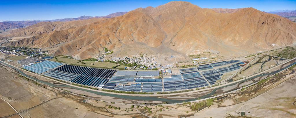 白朗县日喀则珠峰现代农业科技创新博览园(无人机拼接照片,2023年5月28日摄)。新华社记者 姜帆 摄