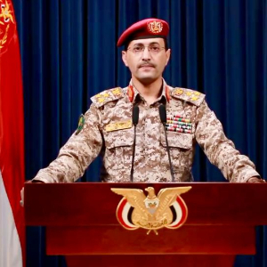 这张2月15日的视频截图显示,也门胡塞武装发言人叶海亚·萨雷亚在萨那发表声明。新华社发