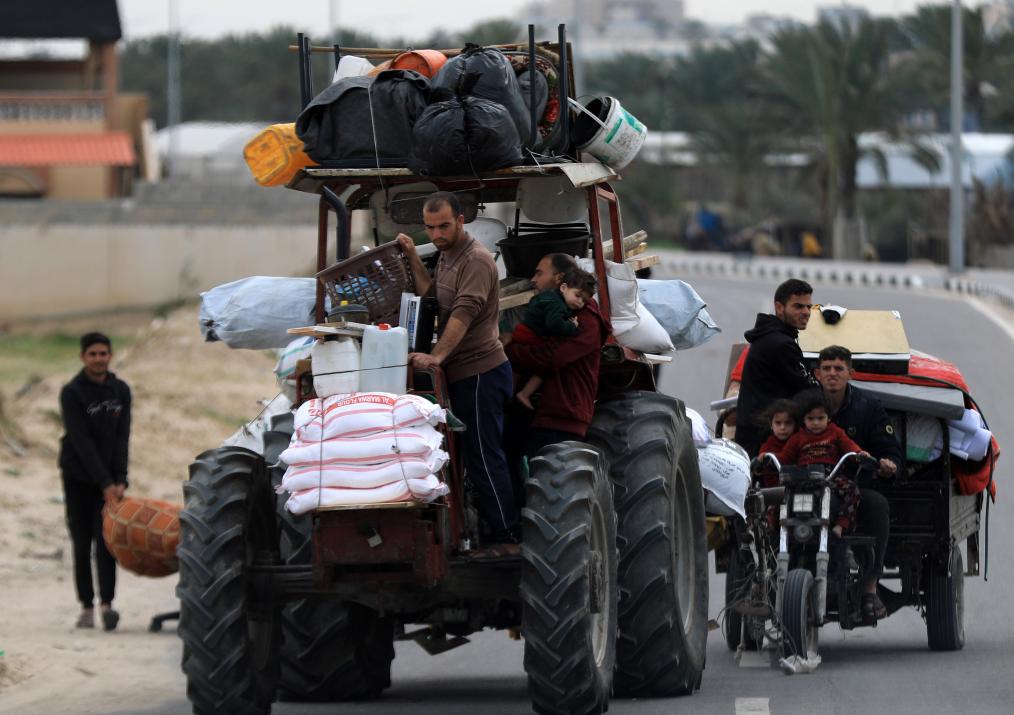 2月13日,在加沙地带南部城市拉法,遭以色列军队袭击影响的人们逃离家园。新华社发(亚西尔·库迪摄)