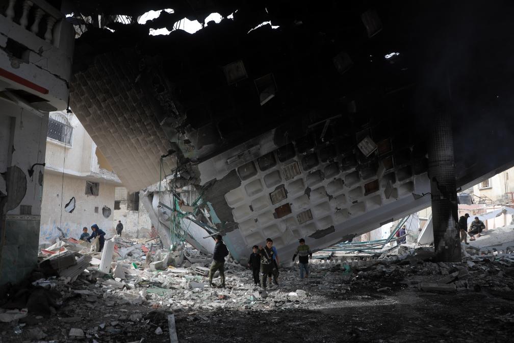 2月12日,人们在加沙地带南部城市拉法查看建筑残骸。新华社发(里泽克·阿卜杜勒贾瓦德摄)