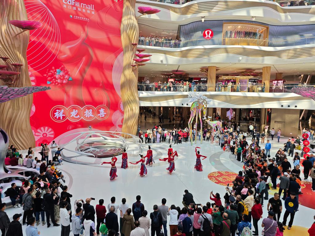 春节期间,在全球最大单体免税店——海口国际免税城内,耍龙灯、醒狮采青、古典舞表演等丰富多样的新春文旅活动轮番上演,让消费者在乐享免税购物的同时感受热闹喜庆的氛围和浓浓的年味。