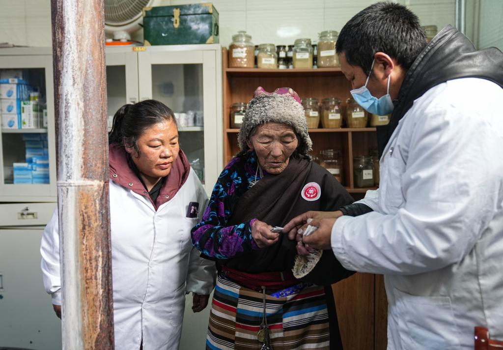 老人在医务室藏医门诊看病(1月30日摄)。新华社记者 晋美多吉 摄