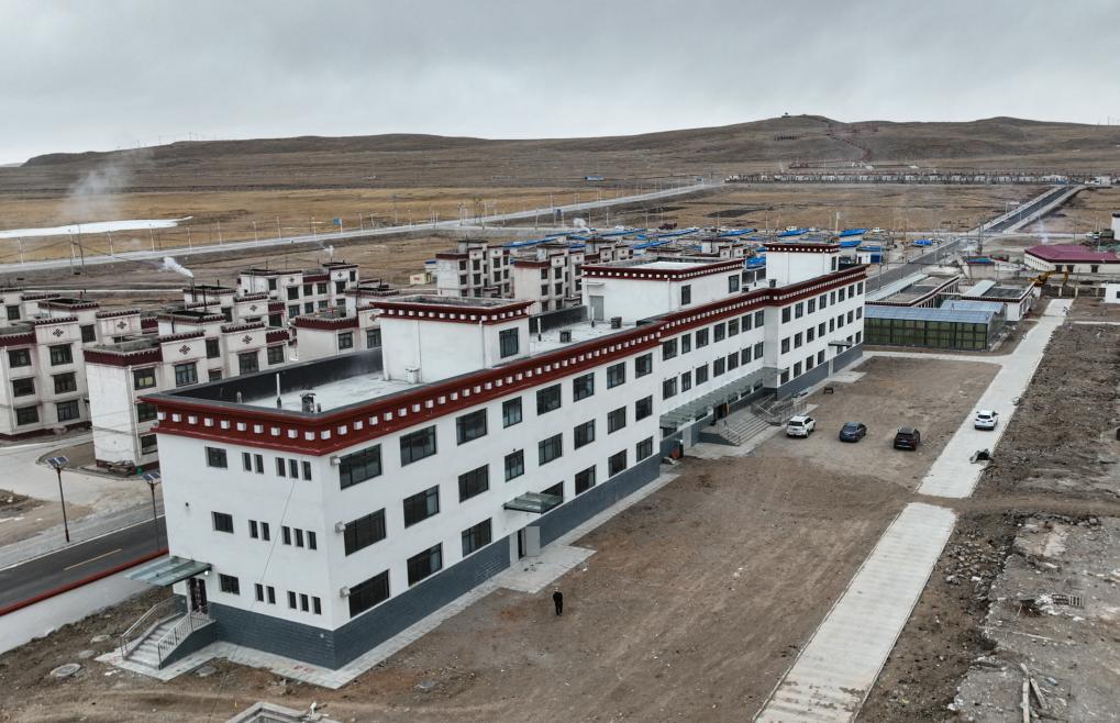 聂荣县特殊困难人员集中供养服务中心崭新的三层高楼(1月30日摄,无人机照片)。新华社记者 晋美多吉 摄