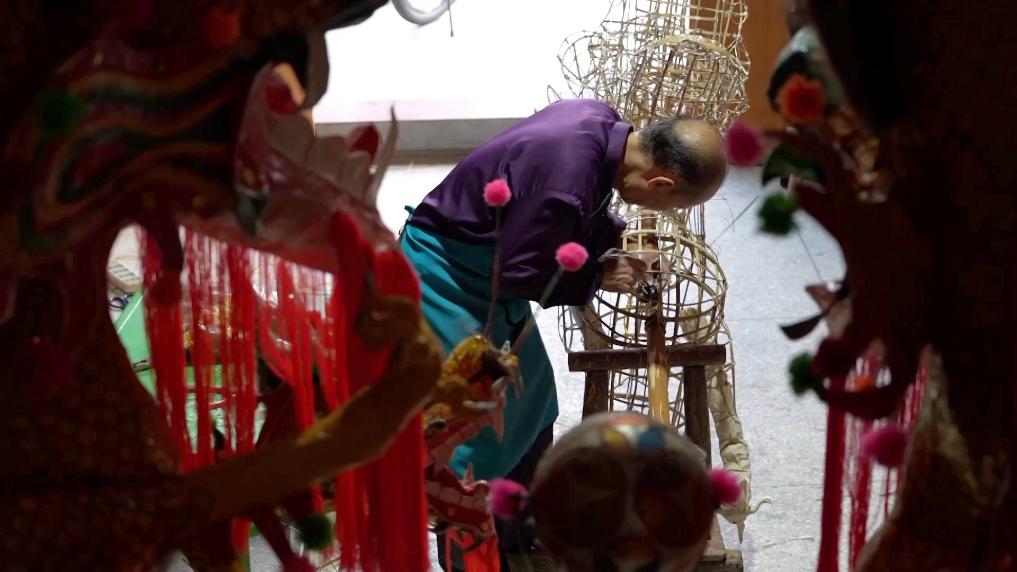 在广西宾阳县宾州镇,手艺人邹玉特每天都坐在一堆“龙”中间,扎制炮龙。农历正月十一“宾阳炮龙节”前夕,他要完成24条龙的制作。