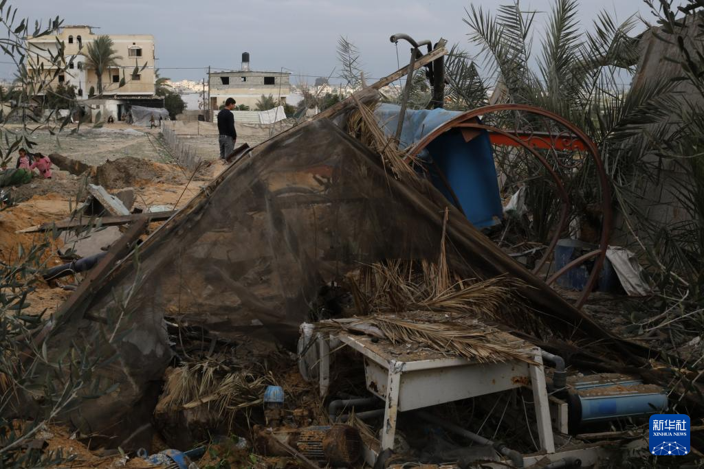 2月18日,在加沙地带南部城市拉法,巴勒斯坦人查看以军空袭后的损毁情况。新华社发(哈立德·奥马尔摄)pagebreak