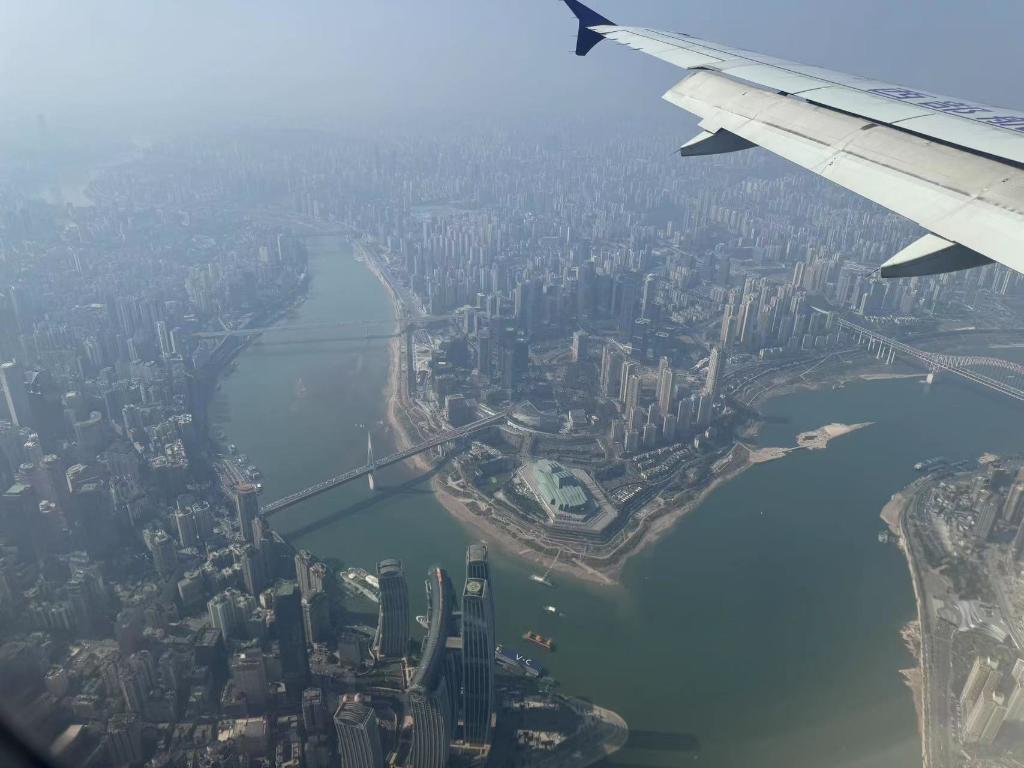 返程飞机环绕重庆渝中半岛,从高空望下,楼房错落有致,大桥飞跨两岸,嘉陵江与长江在此相遇。日日是春日、日日是好日,春意融融的阳光正诉说着开年的热乎劲儿。