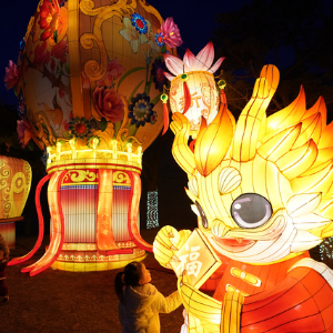 图为2月16日游人在山西太原古县城欣赏花灯(新华社记者 詹彦 摄)