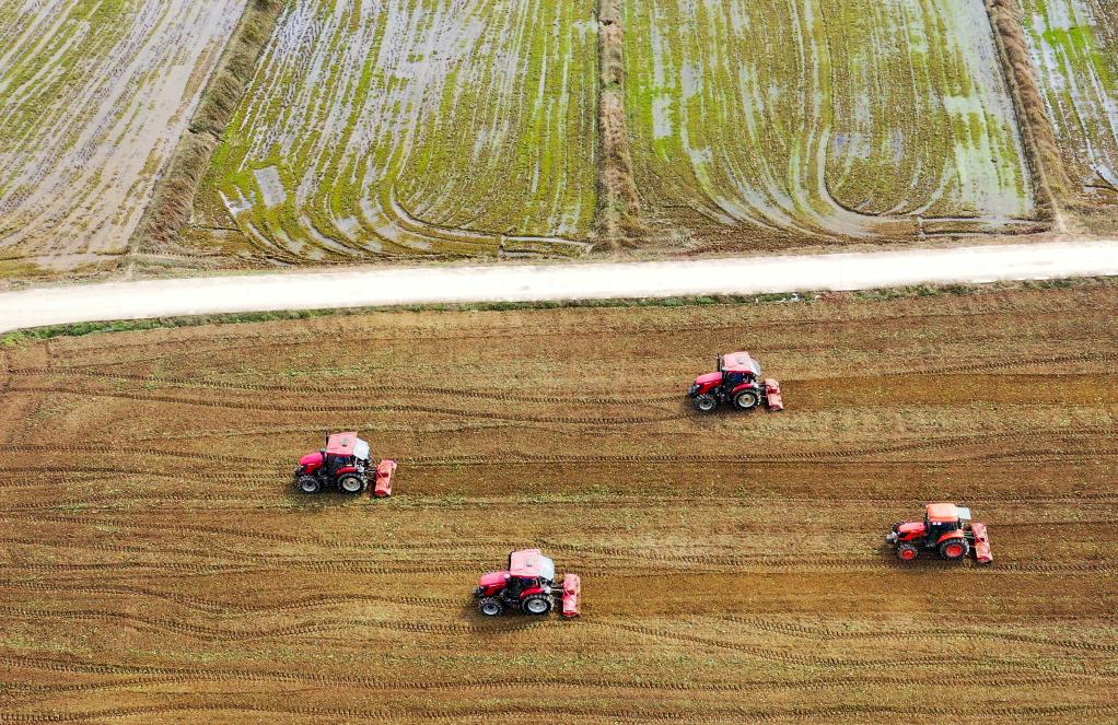 2023年雨水节气前,湖南省永州市新田县农民抢抓农时开展农事活动。