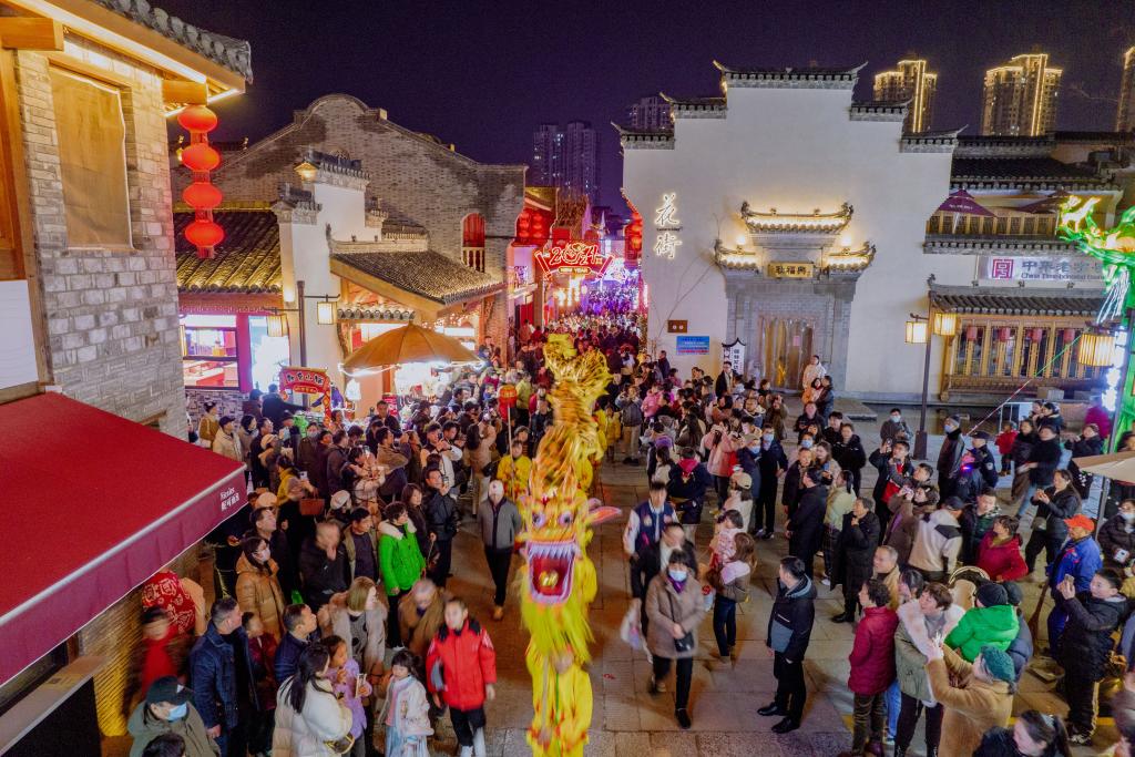 2月10日,舞龙巡游在安徽芜湖古城花街上演。新华社发