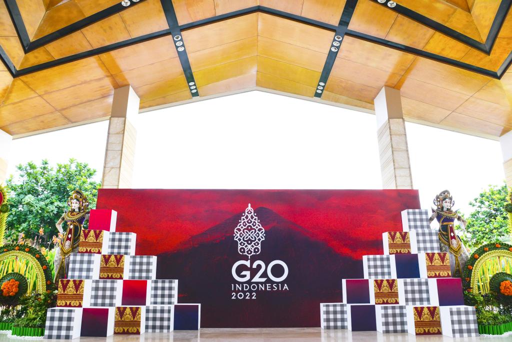这是在印度尼西亚巴厘岛拍摄的二十国集团领导人第十七次峰会会场外的标识(2022年11月11日摄)。新华社记者徐钦摄