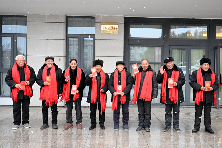 2024年2月1日,8位“大包干”带头人展示领到的2023年度分红红包。组图均由新华社记者 黄博涵 摄