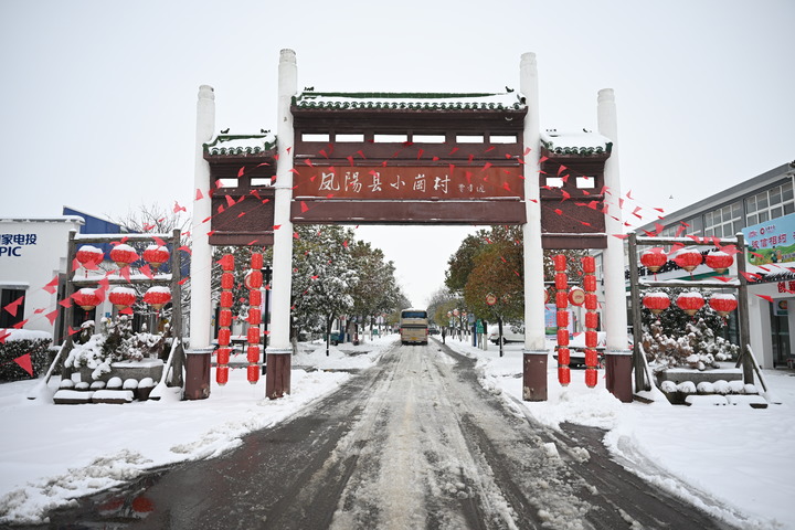 这是2024年2月2日拍摄的位于友谊大道上的小岗村门楼。