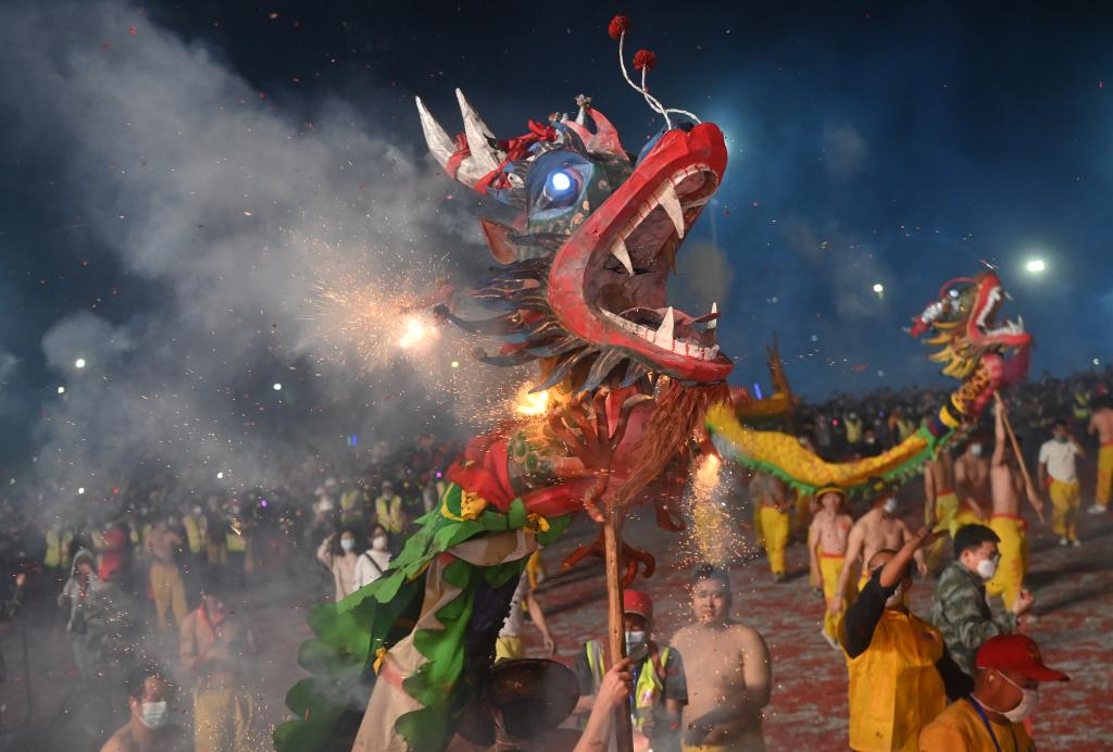 “在现场看舞龙的场面真的非常震撼!”来自广东佛山的游客刘晓霞说。(记者雷嘉兴)