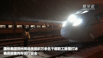 国铁集团郑州局连夜组织万余名干部职工除雪打冰