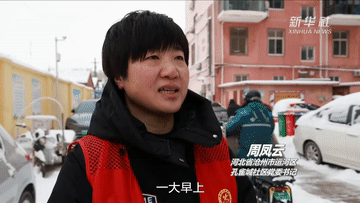 社区工作人员发动群众和辖区志愿者在小区内清雪除冰