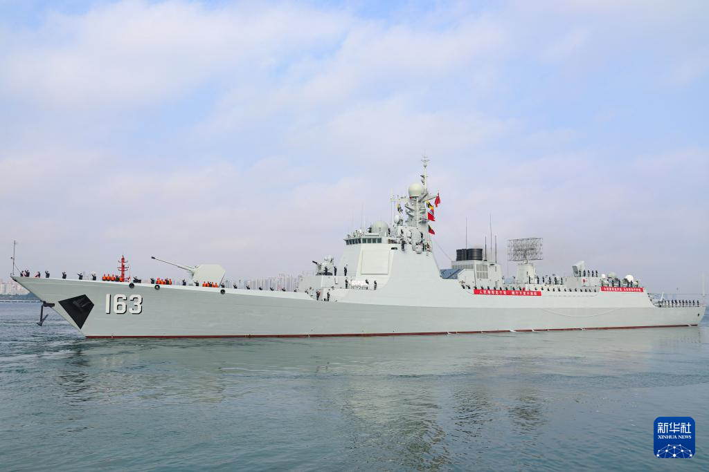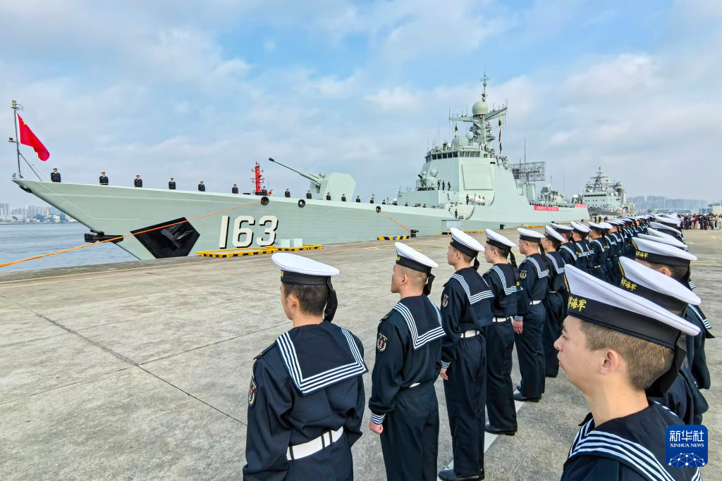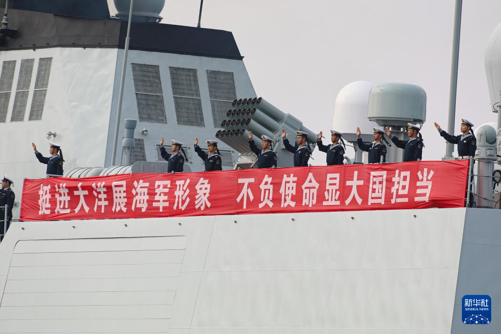 伴随着嘹亮的军乐声,编队舰艇依次解缆,缓缓驶离码头。甲板上,任务官兵整齐列队,精神抖擞,挥手告别。