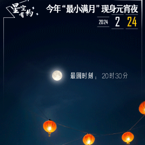 新华社天津2月22日电(记者周润健)2月24日,正月十五元宵节,又是一年赏月时。天文科普专家表示,这轮元宵月不仅是“十五的月亮十五圆”,还是今年“最小满月”。