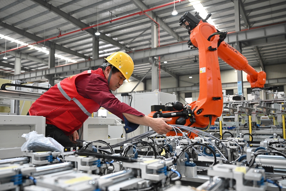 2月19日,宁德思客琦智能装备有限公司工作人员在安装调试机器人自动化设备。新华社记者 姜克红 摄