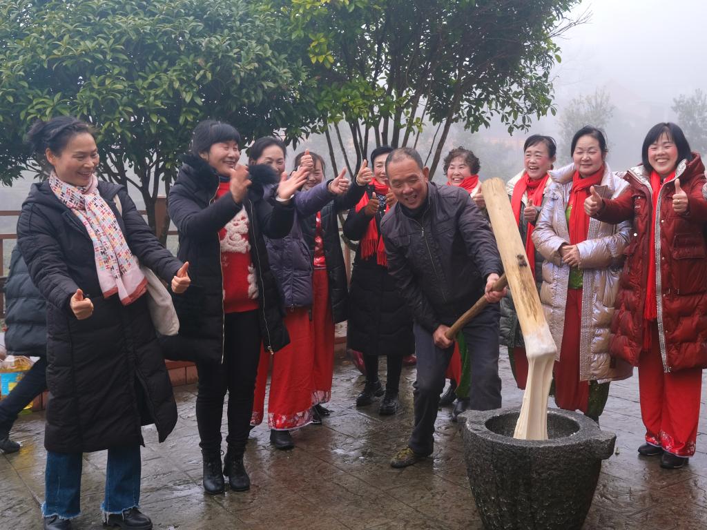 2月2日,神山村群众一同打糍粑准备迎接南方小年。(受访者供图)