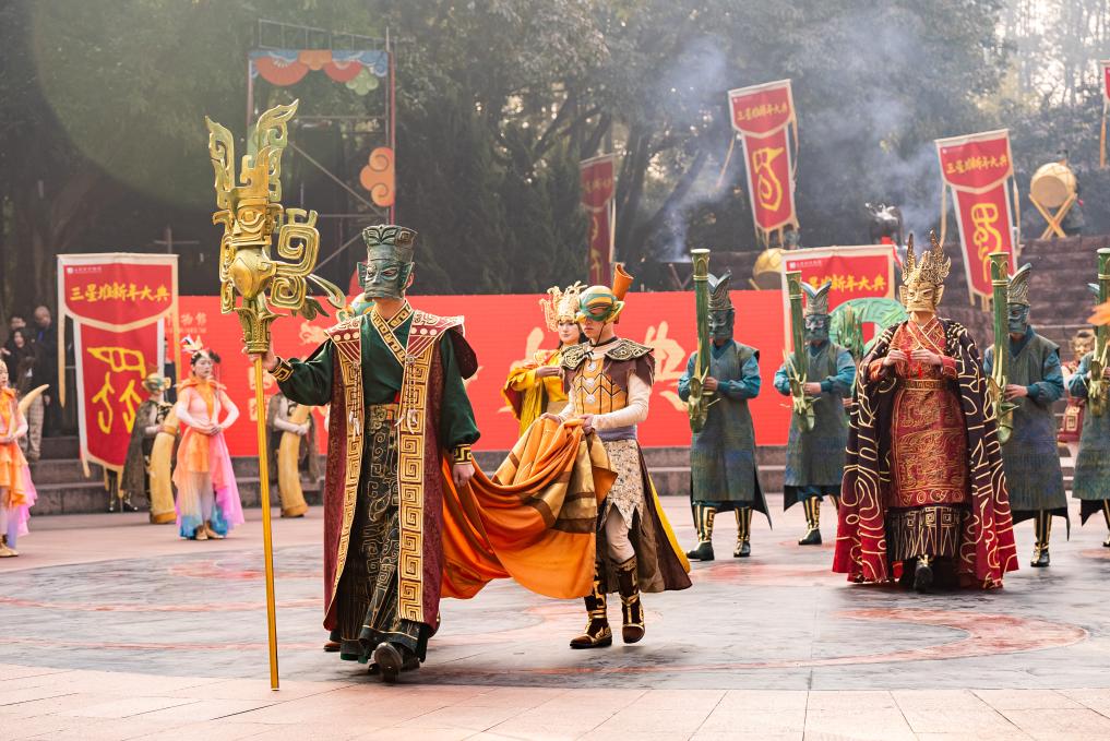 大年初一,三星堆博物馆的古蜀祭祀巡游活动。(三星堆博物馆供图)