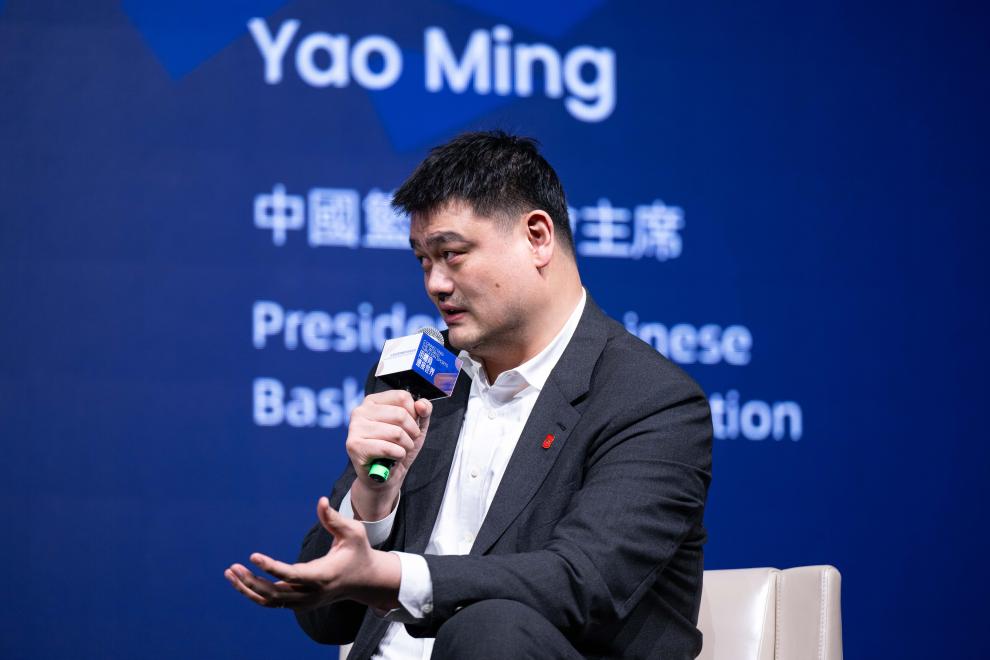 2月23日,姚明在大湾区国际体育商业峰会上。新华社记者 张金加 摄