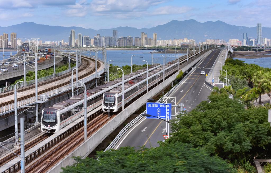 “蓝天碧海飞白鹭,波光远影泛渔舟,海景画卷尽展眼前。厦门地铁带您体验城在海上、海在城中……”伴随着语音播报,厦门地铁1号线列车从集美学村地铁站出发,跨海而过驶向厦门岛内。车窗外是波光粼粼的海面,白鹭飞掠觅食,吸引着不少市民和游客举起手机拍摄。