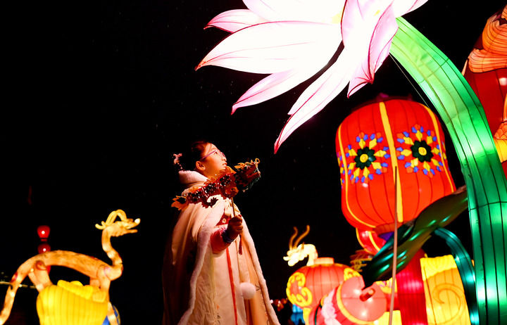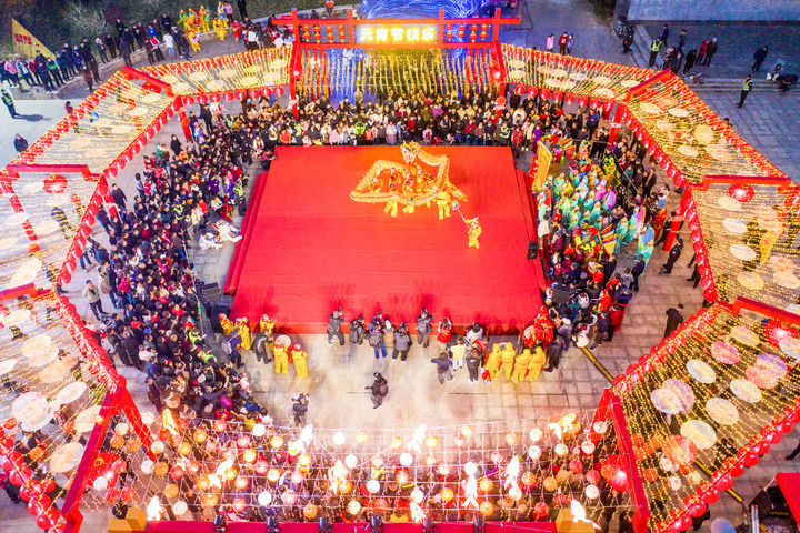 送花灯、猜灯谜、舞龙灯、抢滚灯等