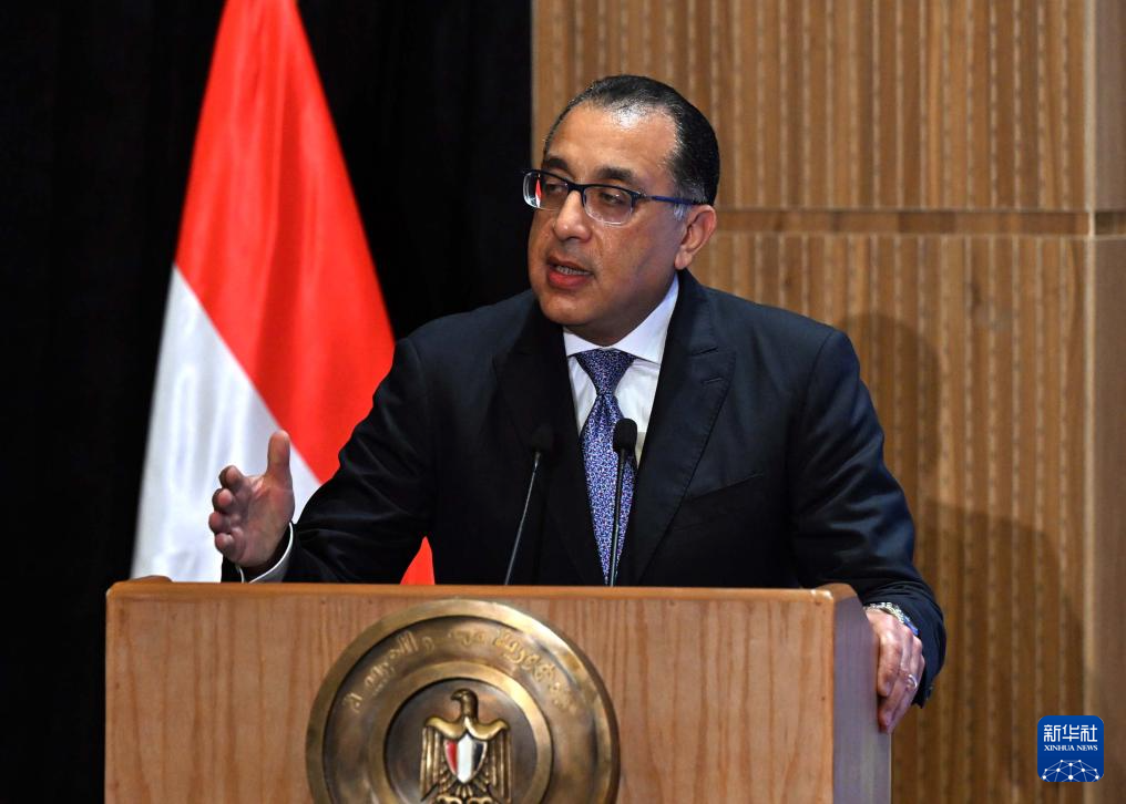 2月23日,埃及总理马德布利在埃及新行政首都举行的签字仪式上讲话。 新华社发