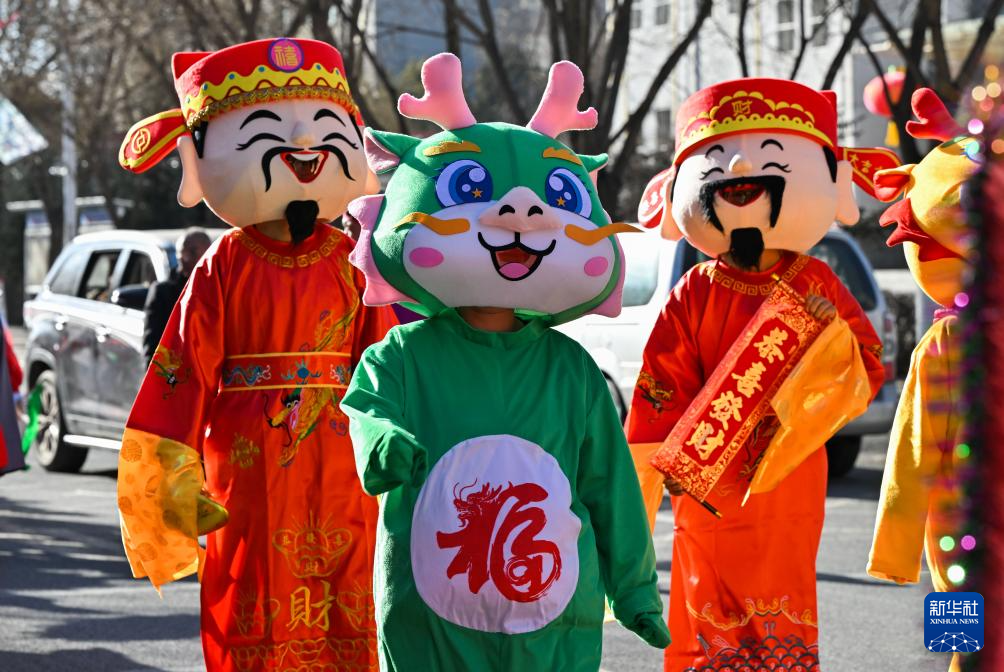2月17日,表演者在凉城县街道上巡游演出。