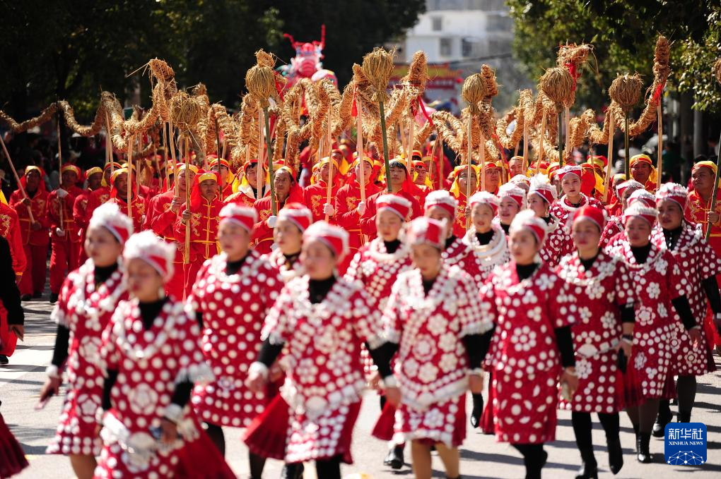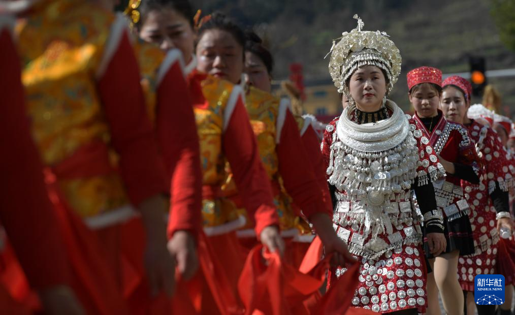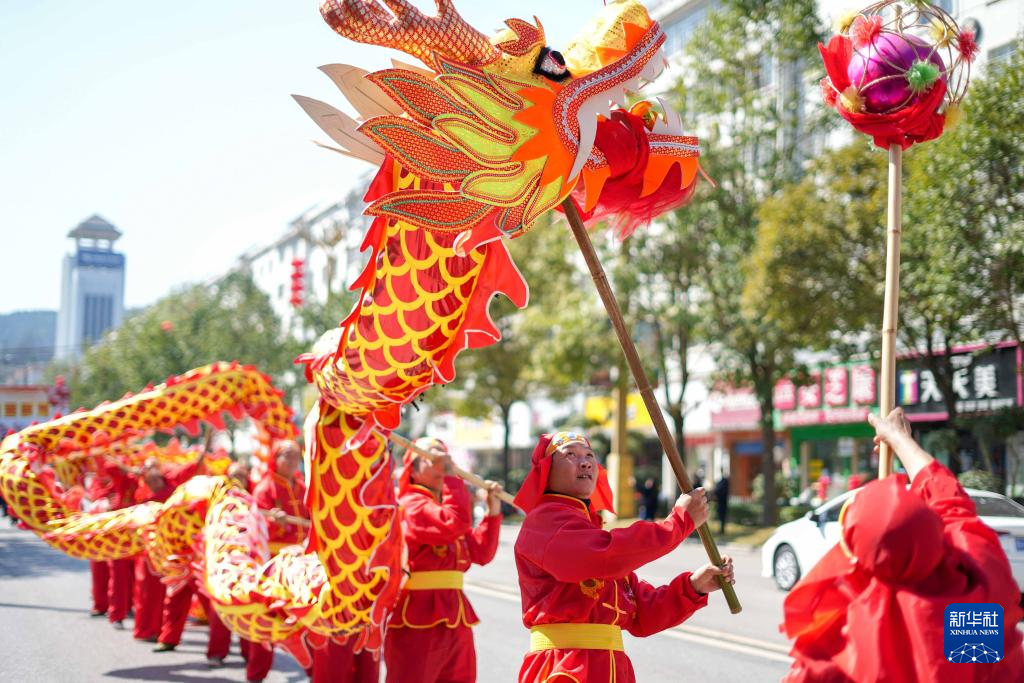 当日,贵州省黔东南苗族侗族自治州黄平县各乡镇群众身着盛装,欢聚一堂,举行舞龙、花灯、舞狮、巡游等传统民俗活动,祈盼新的一年风调雨顺、五谷丰登。据悉,每年农历正月初九,是黄平县传统龙灯会亮灯的日子,活动将持续到元宵节。