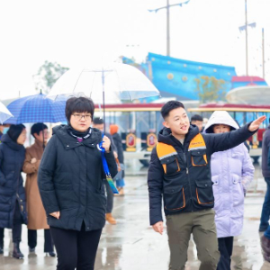 丁亚琳(右三)在湖北省襄阳市一卡丁车运动公园参观考察。(受访者供图)