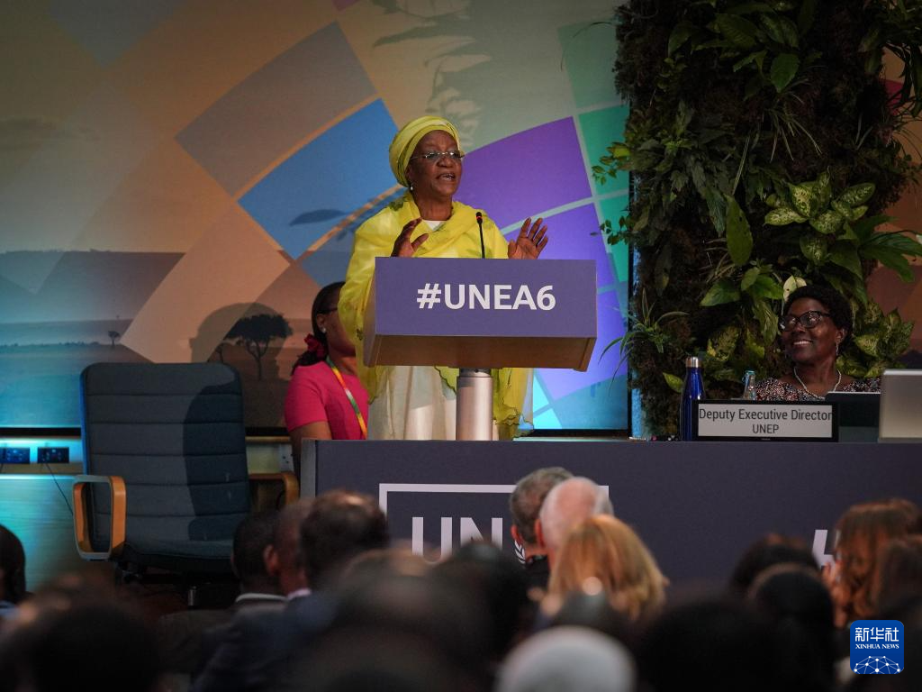 2月26日,在肯尼亚首都内罗毕,第六届联合国环境大会主席莱拉·贝纳利在第六届联合国环境大会开幕式上致辞。新华社记者 韩旭 摄