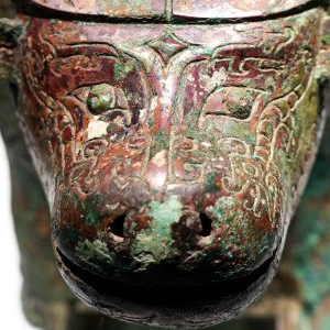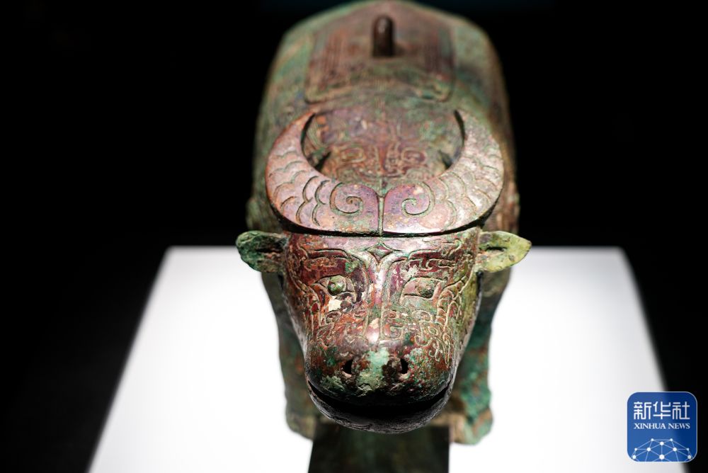 河南安阳殷墟博物馆新馆内展出的展品“亚长”牛尊。新华社记者 吴刚 摄