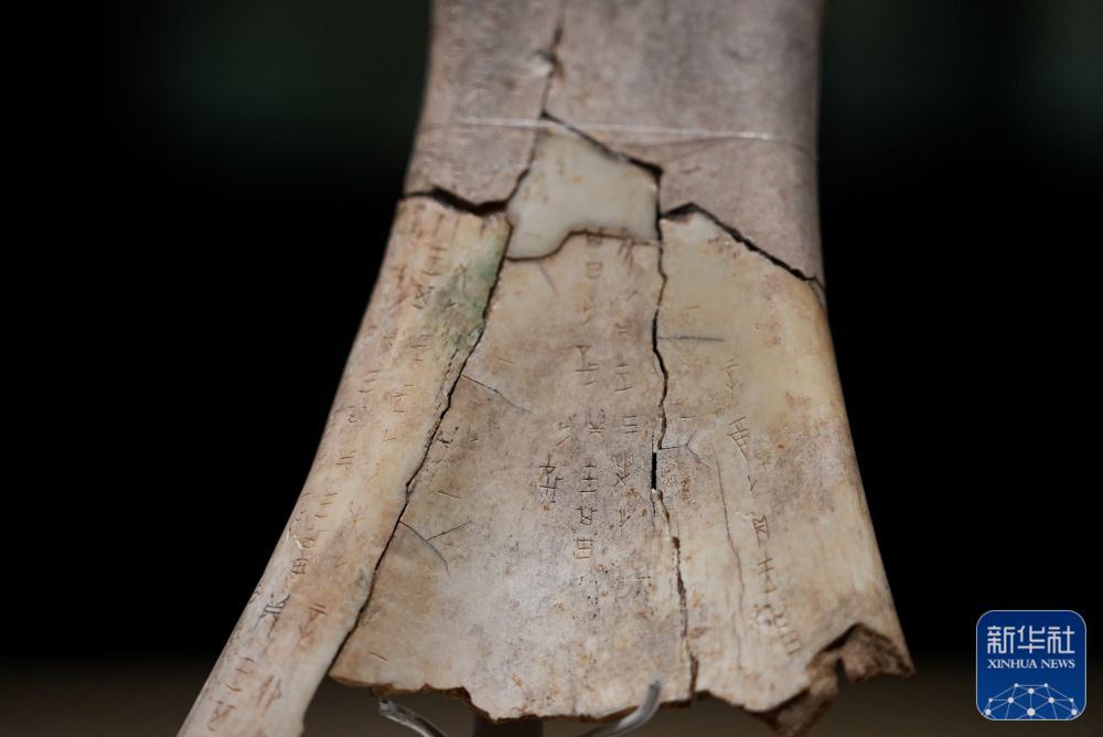 河南安阳殷墟博物馆新馆内展出的刻辞卜骨。新华社记者 吴刚 摄